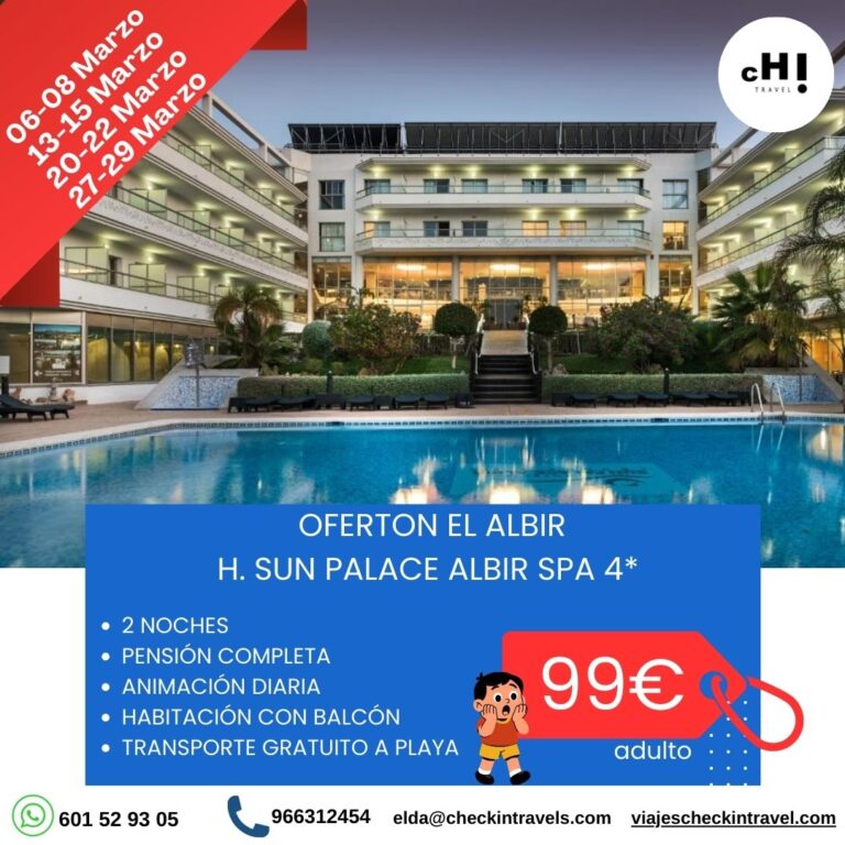 - El check in en los hoteles es a partir de las 15.00 h. Para alojamiento inmediato, consultar suplemento.
