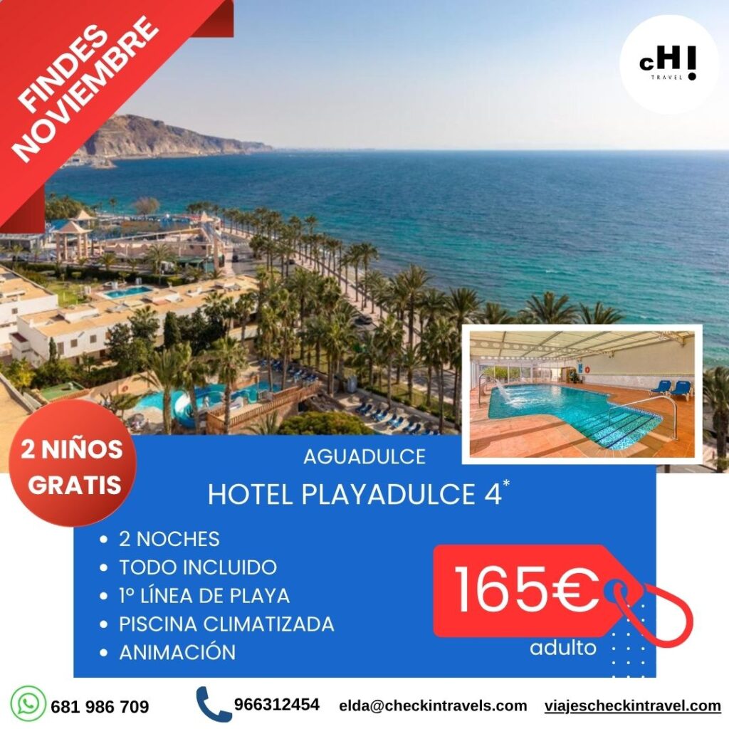 𝐇𝐨𝐭𝐞𝐥 𝐏𝐥𝐚𝐲𝐚𝐝𝐮𝐥𝐜𝐞 𝟒* 𝟒* (Aguadulce, Almería) 𝟎𝟕-𝟎𝟗 𝐍𝐨𝐯/ 𝟐𝟏-𝟐𝟑 𝐍𝐨𝐯/ 𝟐𝟖-𝟑𝟎 𝐍𝐨𝐯