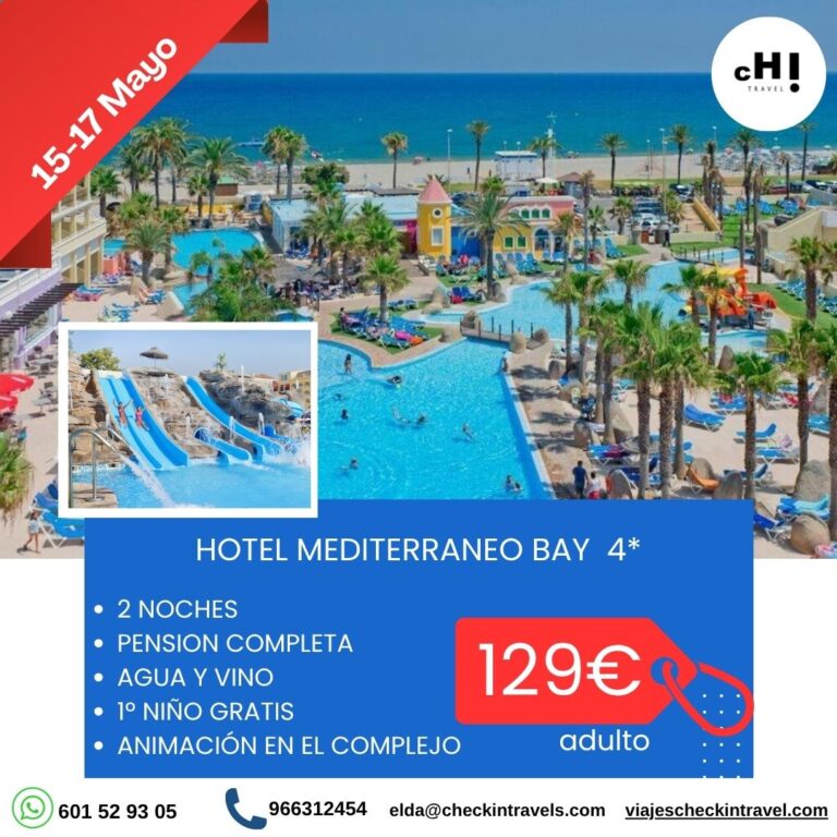ESCAPADA A ROQUETAS DE MAR EN MAYO 04/09/2026 𝐇. 𝐌𝐞𝐝𝐢𝐭𝐞𝐫𝐫𝐚𝐧𝐞𝐨 𝐁𝐚𝐲 𝐑𝐞𝐬𝐨𝐫𝐭 𝟒* (Roquetas de Mar, Almería) 𝟏𝟓-𝟏𝟕 𝐌𝐚𝐲𝐨 Ver oferta